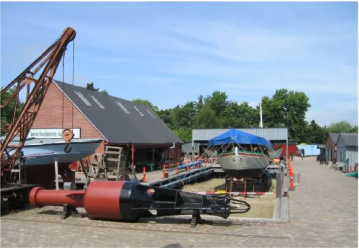 Das Aussengeländer des Fischereimuseum. U.a. mit einer Werft.