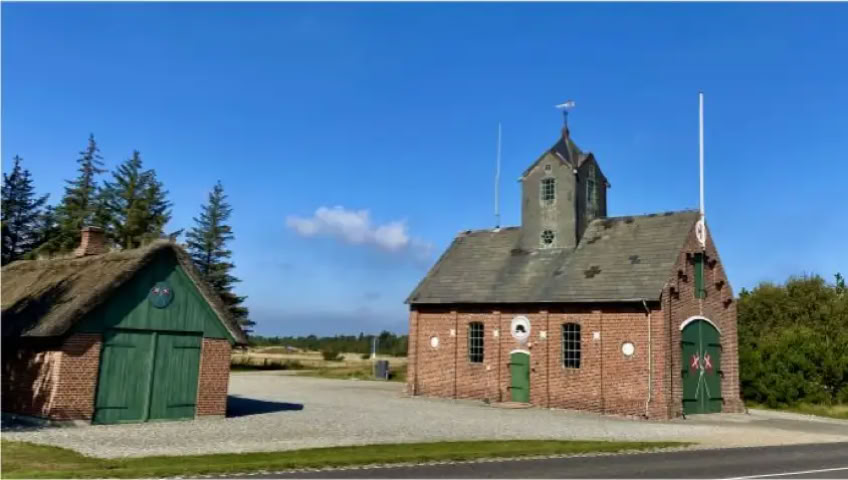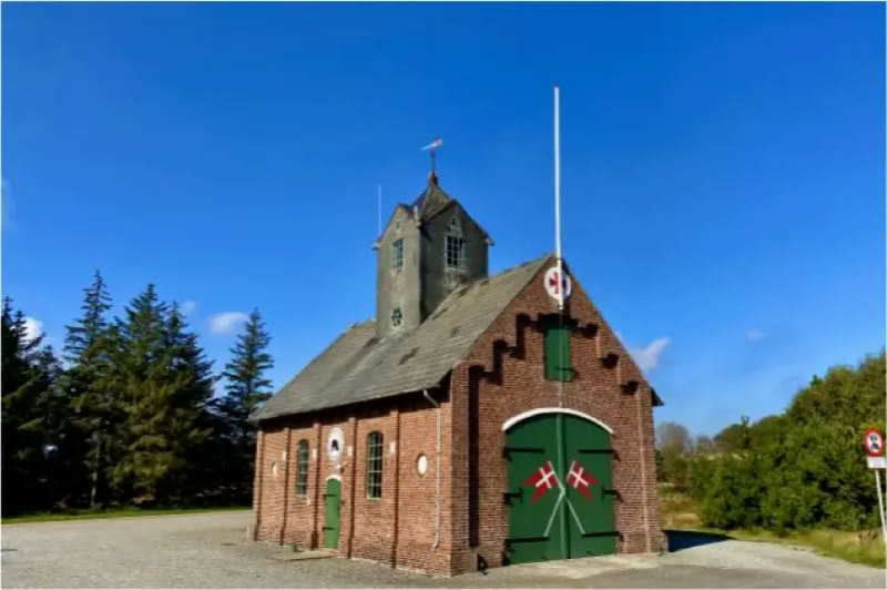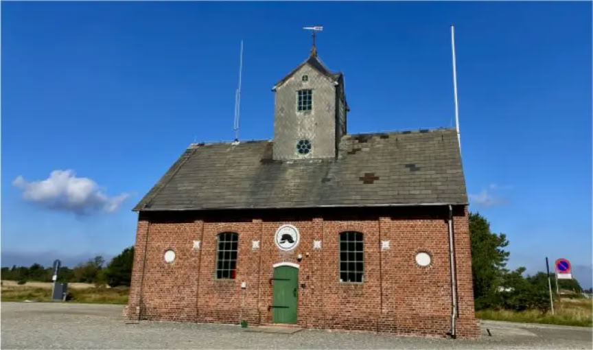 Dieses historische Feuerwehrhaus der Freiw. Feuerwehr Rømø-Rømø Frivillige Brandværn- steht in Rømø Kirkeby im Südosten der Insel. Erbaut wurde das Haus alsRettungsstationvon Kongsmark. Die kleine Turm diente damals als Ausguck, um Schiffe in Seenot zu entdecken.