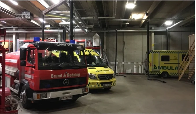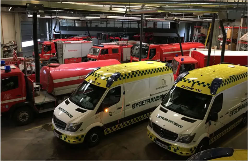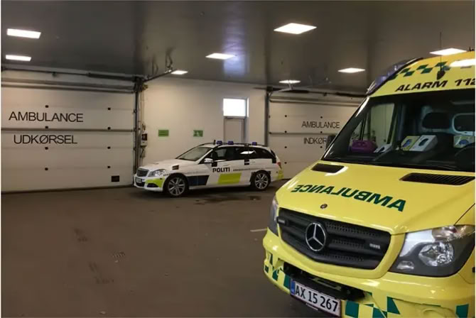 Blick in die Rettungswache Odensee C (Ambulance Syd, Kildemosenvej)