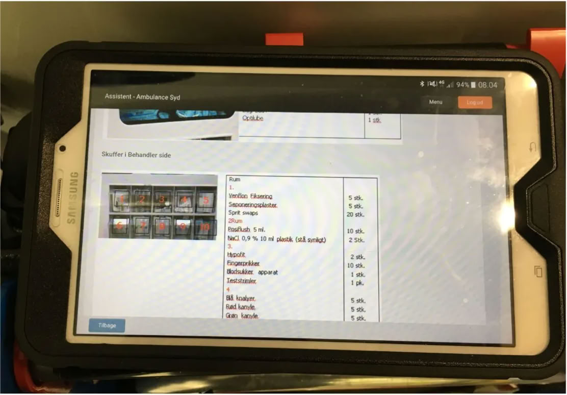 Kein Haupt- und Handlager in dem jeder Artikel zum Befüllen der Fahrzeuge ausgetragen werden muss. Der Wareneingang (Lieferschein) gilt zugleich als, für den Rettungsdienst, verbrauchtes Material. Und dieses entspricht deren QM, denn Ambulance Syd hat das ISO EN Zertifikat.