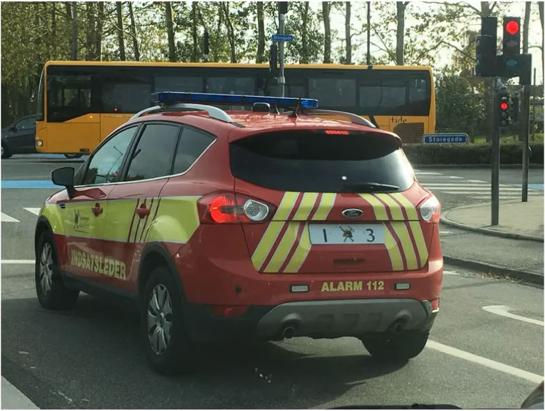 Einsatzfahrzeug für Führungskräfte (Der Leiter der Wehr hat das Kennzeichen I - 1 )der Feuerwehr Esbjerg