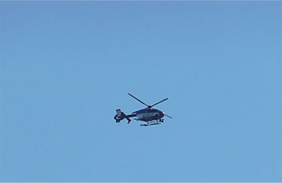 Polizeihubschrauber über dem Öresund bei Malmö.
