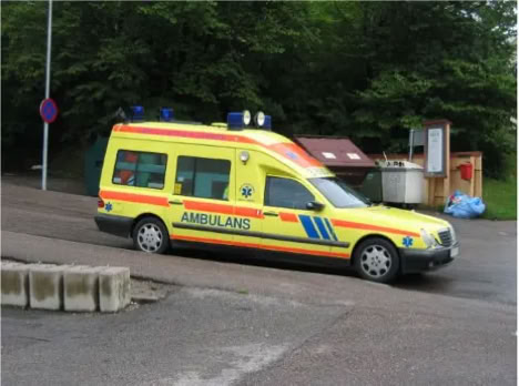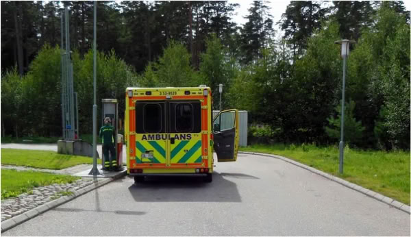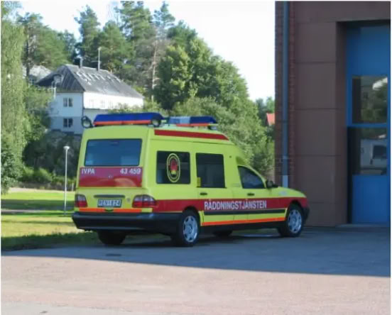 Dieser RTW ist in Leksand (Dalarna) stationiert. Da es einer der alten Generation ist, vermute ich dass er nur noch für Sanitätsdienste...