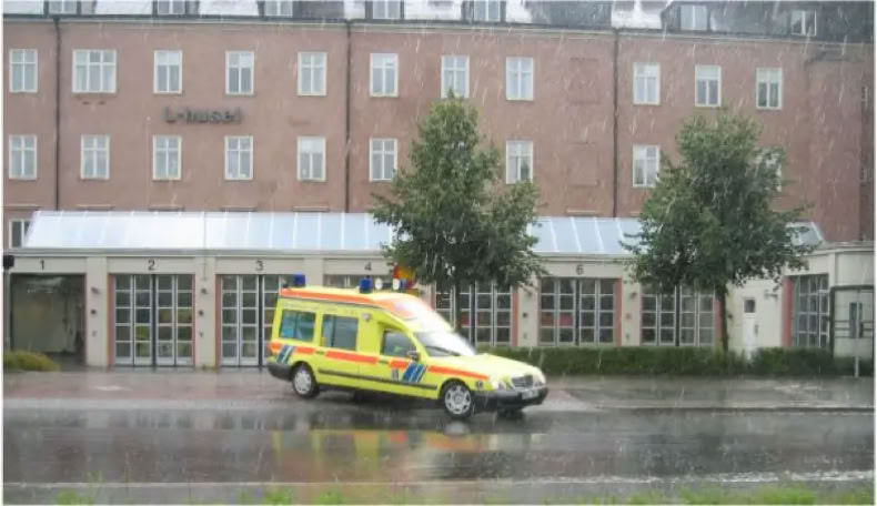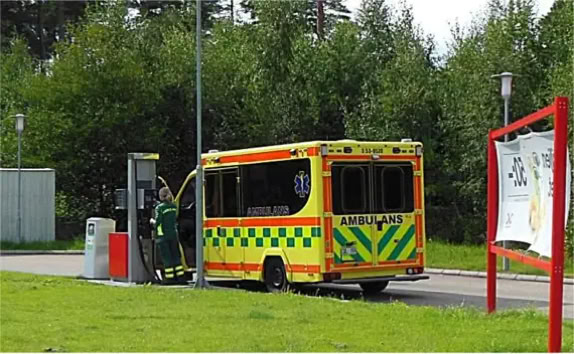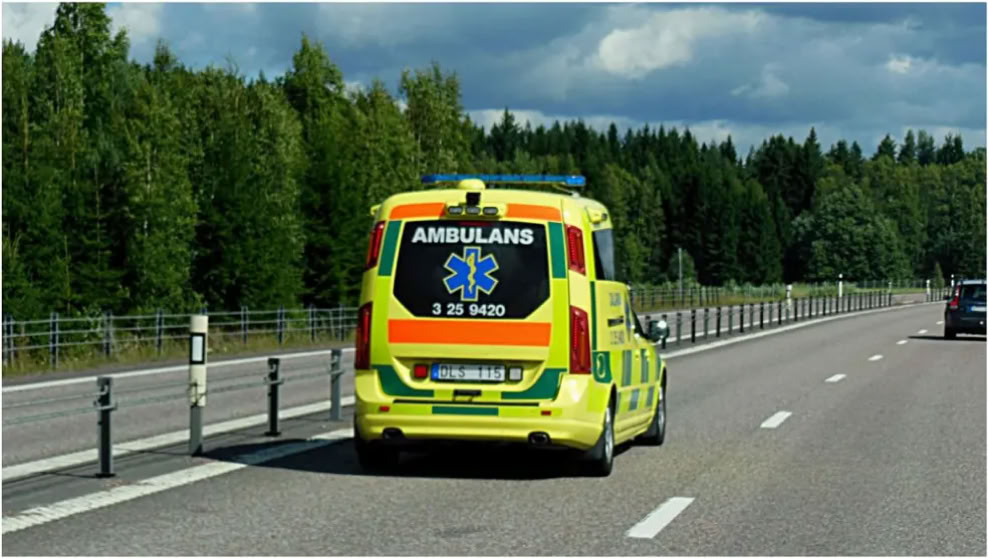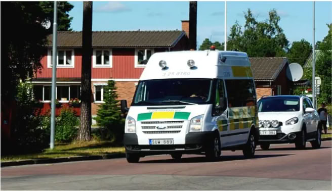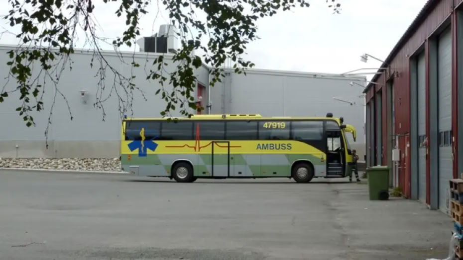 In Östersund ist das größte Krankenhaus im Umkreis von mehreren Hundert Kilometern. Mit diesem Großraum-RTW werden mehrere Patienten gleichzeitig von Östersund in die kleinen Versorgungszentren im Norden zurückverlegt und auf der Rückfahrt Patienten von den kleinen Zentren aufgesammelt, damit diese in Östersund intensiv behandelt werden können.
