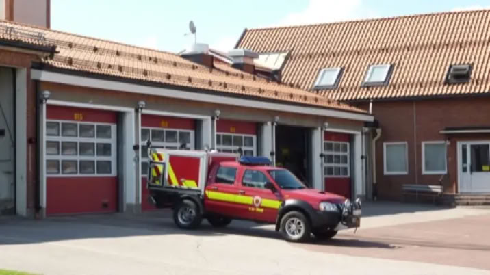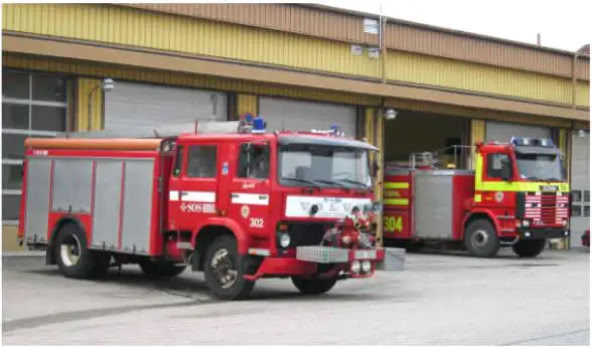 Löschfahrzeuge vor der Wache (Räddningstjänsten) in Lysekil
