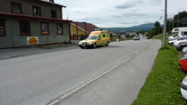 Diesen RTW sah ich vor der Gesundheitszentrale von Funäsdalen (Härjedalen).Und 10 min. später auf der RV 84 im Ort.
