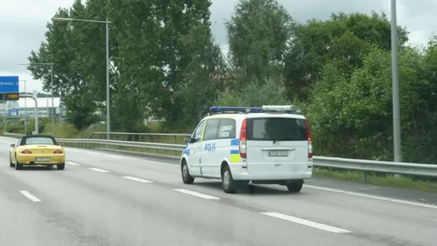 Diesen Polizeiwagen sah ich auf der E6 bei Göteborg. Kennzeichensuche:WTG 142