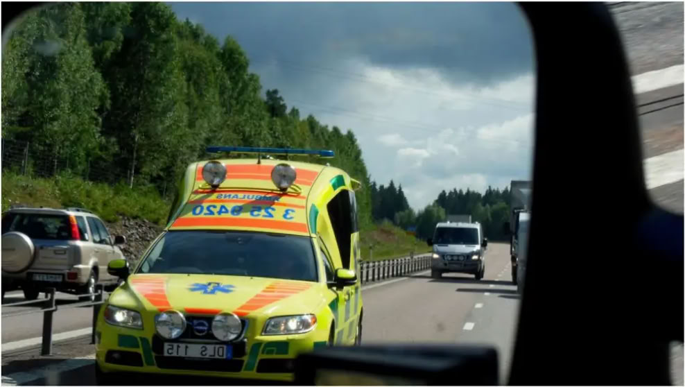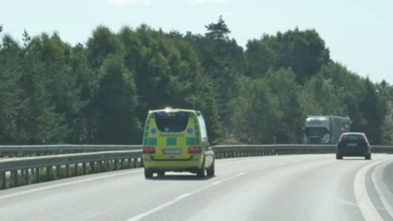 Etwas weiter südlich von Kungsbacka auf der E6, wurde ich von diesem Ambulancefahrzeug überholt.