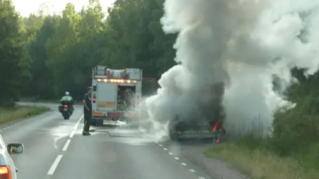 PKW-Brand uf der Reichsstraße 238 zwischen Sunne und Arvika (Värmland). Im Einsatz müsste die Feuerwehr Sunne sein.