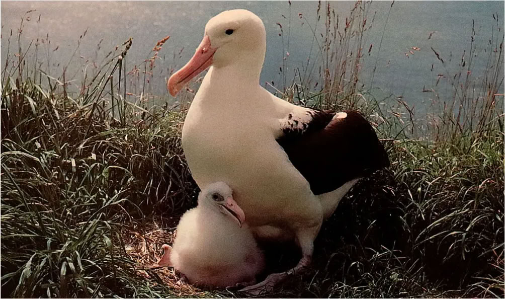n den 1990er begann man damit Königsalbatrosse, genauer gesagt die „nördliche Unterart“ wieder anzusiedeln. Das Hindernis dabei ist, dass die monogam Lebenden Pärchen erst nach 6-10 Jahren zum ersten Mal brüten und nie mehr als ein Ei legen. Das eine Kücken wird bis zu 9 Monate gehegt und gefüttert. Wenn der Jungvogel es dann, dank starker Frühlingswinde das Nest fliegend verlässt, betreten sie erst nach 4-5 Jahren zum ersten Mal wieder festen Boden. Die neuseeländischen Forscher wissen also frühestens nach 5 Jahren, ob die Kücken zum Vogelschutzgebiet zurückkehren und evtl. einen Partner finden, um die Brutkolonie zu vergrößern.