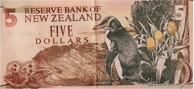 dabei bis nah ans Nest vordringen durfte, ist das bis heute seltene Gelbaugenpinguin. Ihm ist der 5$ Schein gewidmet