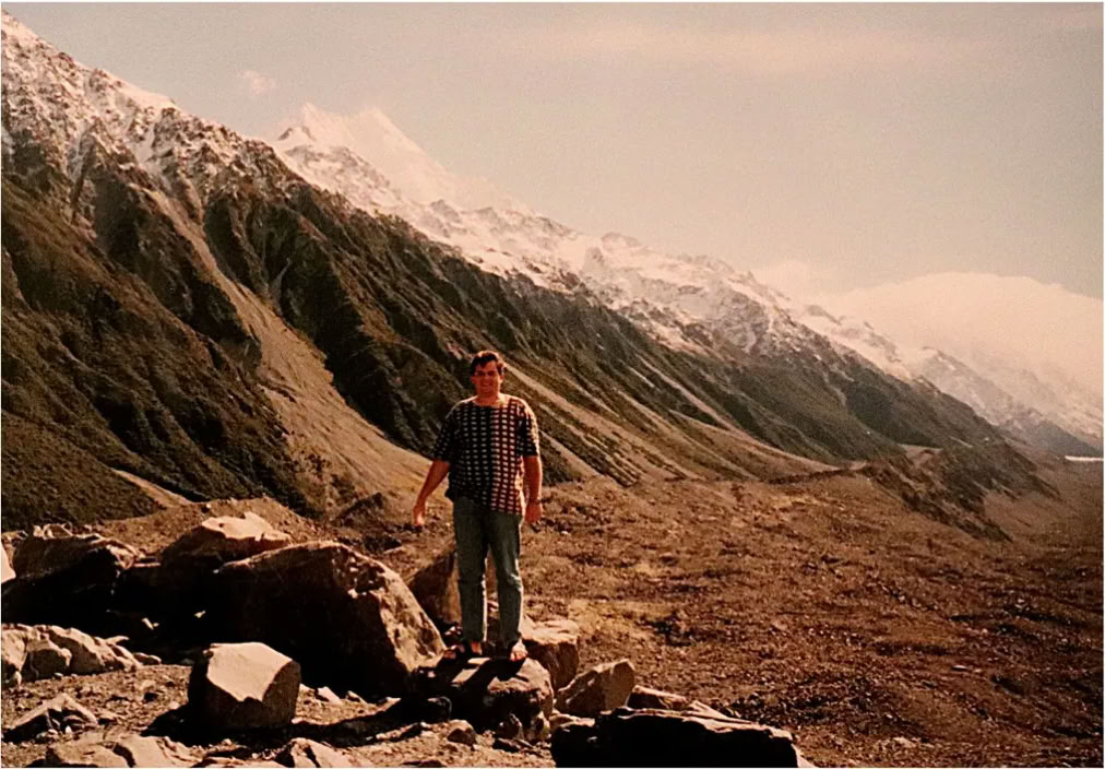 Im Hintergrund der höchste Berg NZ, der 3724 m hohe Mt Cook. Mittlerweile hat er wieder den alten Namen der Maoris „Aoraki“