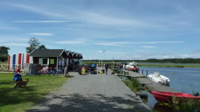 An der Südspitze wird es dann wieder Touristisch. Im kleinen Ort Ekenäs gibt es einenCampingplatzmit Badestelle und einen Anleger für die Fährboote zur Insel Lurö, der größten Insel imLurö Schärengarten im Vänern. Auf einer Infotaffel lass ich, dass in dem Schärengarten auch Seeadlerleben sollen.