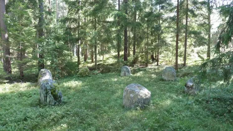Ich fuhr 10km weiter nordwärts die Ostküste entlang. Am Badeplatz in Gaperhult legte ich mich für eine Stunde in die Sonne und as anschl. zu Abend. Rund um den Badeplatz stehen mehrere Ferienhäuser, dies bedeutete für mich, dass das Übernachten nach dem Jedermannsrecht hier nicht möglich ist, ohne die Anwohner zu fragen. So überragend war der Platz aber nun auch nicht, so dass ich weiter Richtung Norden nach Grimbråten fuhr. Der Badeplatz ist nicht in der Straßenkarte vermerkt, aber ich hatte ihn auf dem Infoboard in Ekenäs gesehen. Zuvor bog ich auf halber Strecke bei Ölserud rechts nach Hälleshult ab. Hier liegt, in einem Wald versteckt, ein Thingplatzaus der älteren Eisenzeit (500-400 v. Chr.) Aus der gleichen Zeit befand sich hier früher auch ein Gräberfeld.