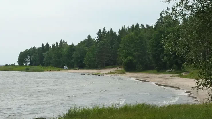 In der Nacht fing es an zu regnen und hörte erst am folgenden Nachmittag wieder auf. Ich versetzte meinen Wagen am Morgen zum 200 m langen Sandstrand. Während des Vormittages konnte ich einem Fischadler beobachten, der entlang der vorgelagerten Insel segelte und nach Beute suchte. Ich hatte ihn aber leider nie gesehen, wie er sich ins Wasser hinabstürzte. Gegen 15 Uhr klarte das Wetter endlich auf. Weil das Wasser zu flach zum schwimmen war, machte ich einen Spaziergang im angrenzenden Wald, um mich endlich körperlich zu bewegen. Sechs Stunden im Auto sitzen können ganz schön nerven.