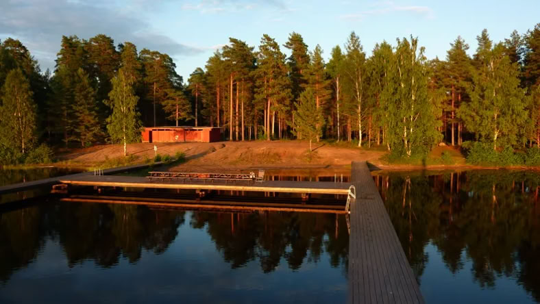 Am Badeplatz steht, nach eigenen bekunden, Schwedens besteRauchsauna, die vom örtlichen Saunaverein betreut wird.