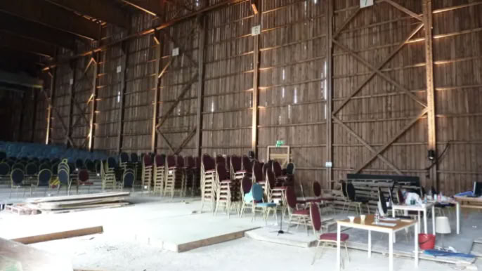 Ein altes Fabrikgelände mit seiner großen Holzhalle dient nun der Kultur.