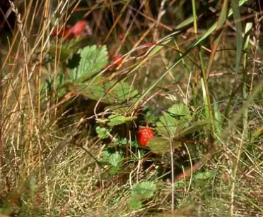 Und weil der Baumbestand in diesen Anlagen nicht so dicht ist, wachsen hier auch die verschiedensten Beeren. Die Erdbeeren sind leicht zu übersehen, denn die leckeren Früchte hängen oft unter einem Blatt. Blaubeeren sind da schon einfacher zu entdecken.