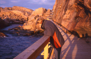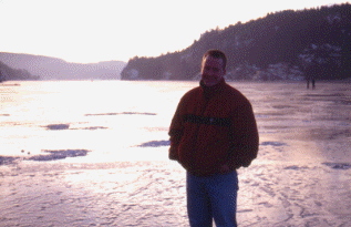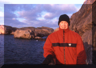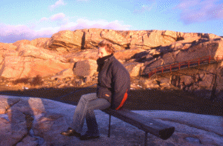 Hendrik mit einem Bein in Schweden und dem anderen in Norwegen>>>