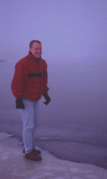 Das Wasser im Hafen war dick gefroren. Die Grenze vom Hafen zum See konnte man an den unterschiedlichen Eisfarben gut erkennen. Unsere Meinungen ob auch das Eis auf dem riesigen See trägt, stand 3 zu 4. Nr Vier Hendrik wollte seine Meinung beweisen und bin mit einem Fuß aufs Seeeis. Lautes Knacken ließ ihn seine Meinung ändern :-))