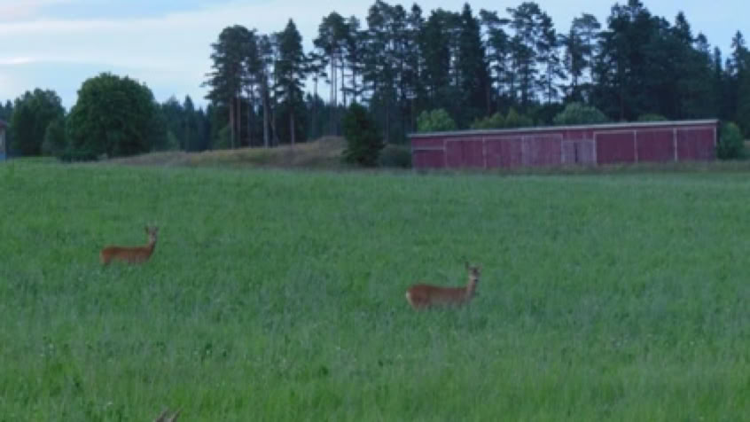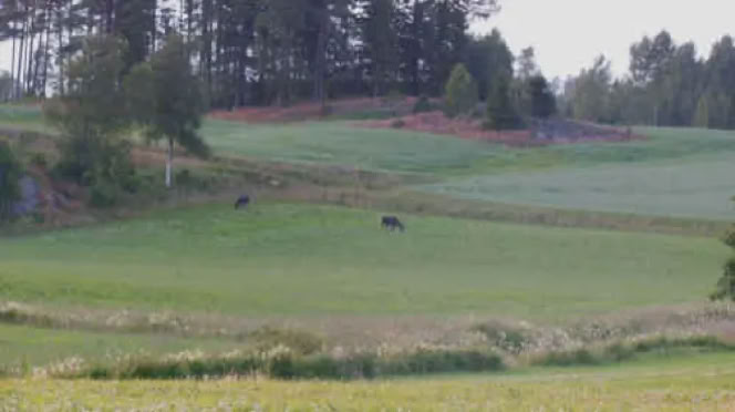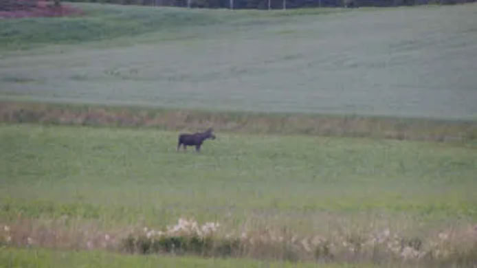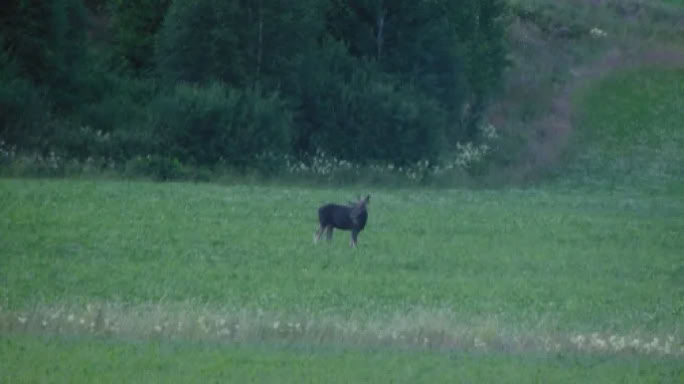 Am Abend fuhr ich erneut Spuren auf Bernds Rasen, weil ich mich auf Elchsafari begeben wollte. Wie im letzten Jahr, versuchte ich es wieder zwischen Färgelanda undHedekas. Dort hatte ich im letzten Jahr Glück und auch in diesem Jahr war mir das Glück wieder holt. Kurz vor Hedekas entdeckte ich zwei Elche auf einer Weide. Kurz hinter Hedekas sah ich dann noch einen, der aber zu weit entfernt war, um ihn, bei der Dämmerung, mit meiner Kamera zu dokumentieren. So mal der Elch auch noch vor einem dunklem Wald stand.