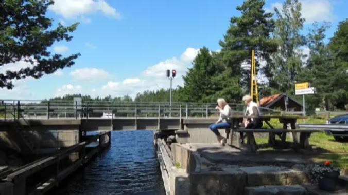 Zuvor bogen wir aber vor Håverud ab, um nach Upperud am östlichen Ufer des Upperudsholjen zu gelangen. Wir wollten zum Handverkshuset,so wie ich es seit 15 Jahren Tat. Kein Aufenthalt in Färgelanda ohne shoppen im Handverkshuset. Die Besitzer hatten ja schon oft gewechselt, das wusste ich. Aber nun der Schock! Der Laden war geschlossen und das, wie es scheint, für immer. Nicht nur ich werde dem hinterher trauern. Wir fuhren ein paar Meter weiter zur Klappbrücke, die den Dalsland - Kanal überbrückt. Östlich davon befinden sich zwei Schleusen. Zwei Boote warteten im Upperudsholjen darauf geschleust zu werden. Wir nutzten die Gelegenheit, um uns dieses Schauspiel anzuschauen.