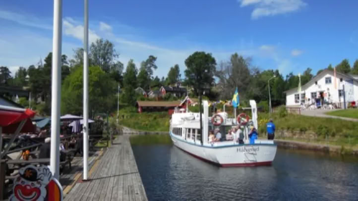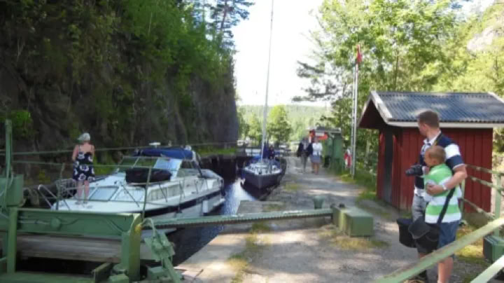 Am folgenden Montag fuhr ich mit Inge, Anne und Matthias, dem Besuch aus der alten Heimat, zum nördlich gelegenen Håverud, wo derDalsland - Kanalmittels einemAquäduktvom Upperudsholjen in den höher gelegenen See Åklång geleitet wird.