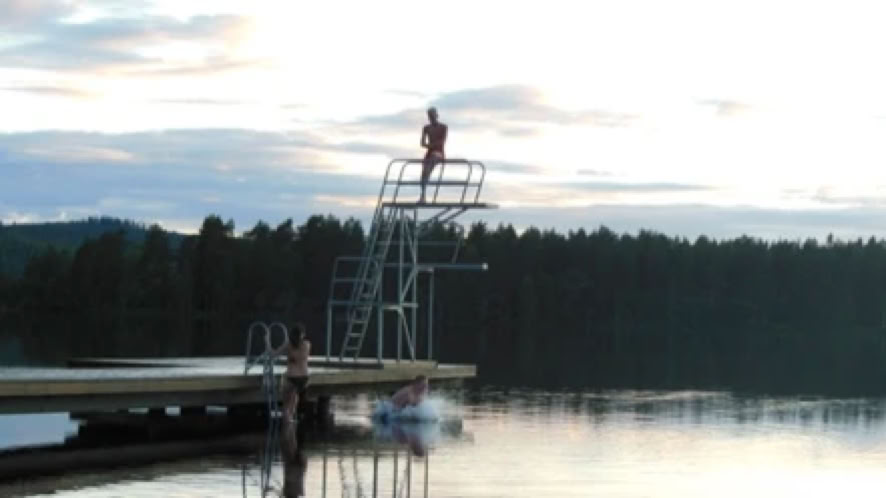 Bevor ich den Weg bergauf zum Haus fuhr, steuerte ich wie immer erst einmal den kommunalen Badeplatz unterhalb des Hauses an. Auf dem Parkplatz fix die Badesachen angezogen und ab zum See. Schon der erste Schritt ins Wasser ließ mich ins Stocken geraten. "Wow, was ist das Wasser kalt!" Es war also wahr, der Sommer in Schweden war bisher eine Katastrophe. Konnte ich in dieser Jahreszeit bisher immer mehr oder weniger zügig in den See marschieren, war ich in diesem Jahr kurz davor wieder umzudrehen. Ich schritt also langsam mit langen Pausen ins Wasser, bis ich eine schwimmfähige Tiefe erreichte.