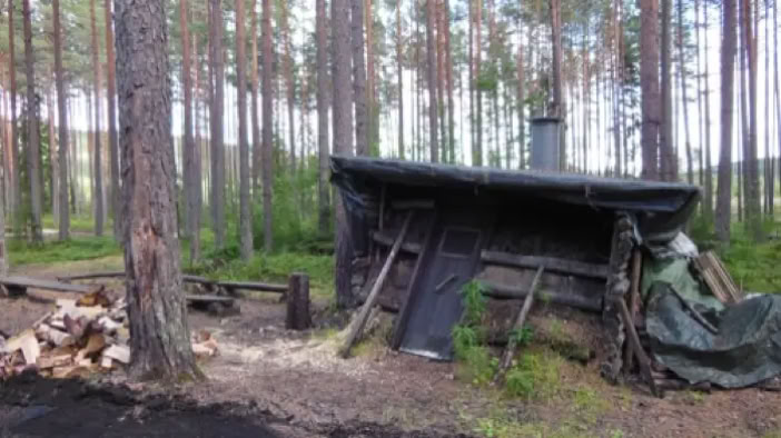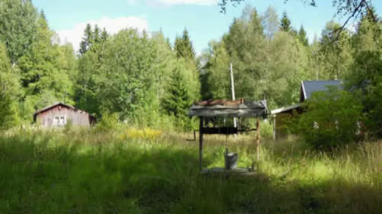 Der Waldweg führt in einer Schleife nach Silvergruvan. Etwa 500m hinter den Silbergruben steht dieses verlassene Gehöft.