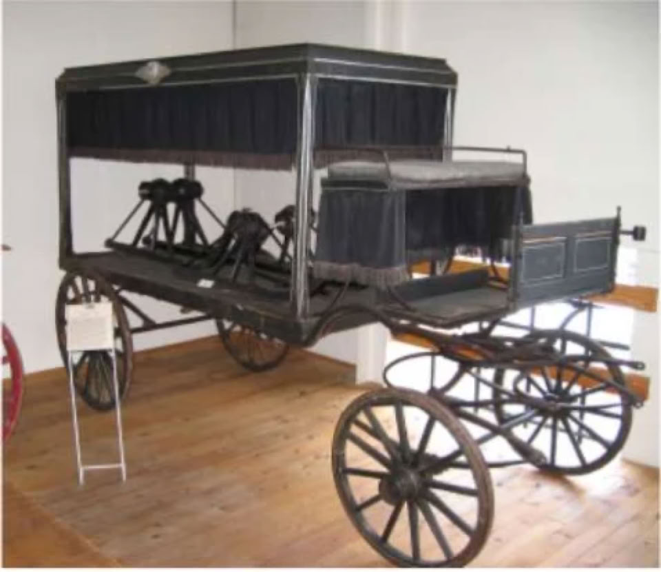 Leichenwagen, die Räder können gegen Kufen ausgetauscht werden. 1 PS