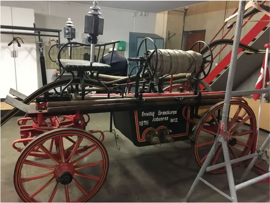 Die Frivillige Brandvær Aabenraaverfügt zwar über eine große Halle, diese hat aber nur drei Tore. Zwei Tore gehören zur Feuerwache, ein Tor zum Rettungsdienst. Deshalb stehen die aktiven, wie auch die historischen, Einsatzfahrzeuge nach einem ausgeklügeltem System.