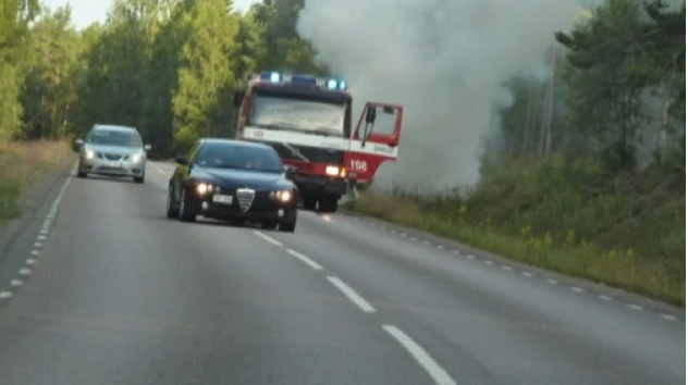 PKW-Brand uf der Reichsstraße 238 zwischen Sunne und Arvika (Värmland). Im Einsatz müsste die Feuerwehr Sunne sein.