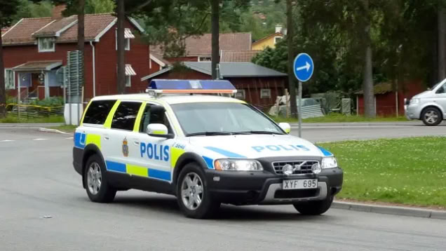 Polizeifahrzeug in Rättvik (Dalarna). Kennzeichensuche: