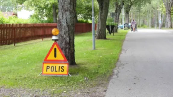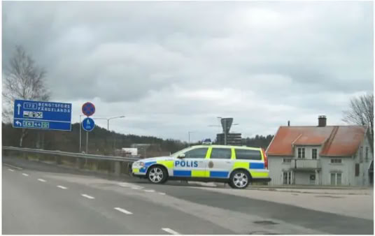 Stoppschildkontrolle der Polizei an einer Abfahrt der E6 in Uddevalla