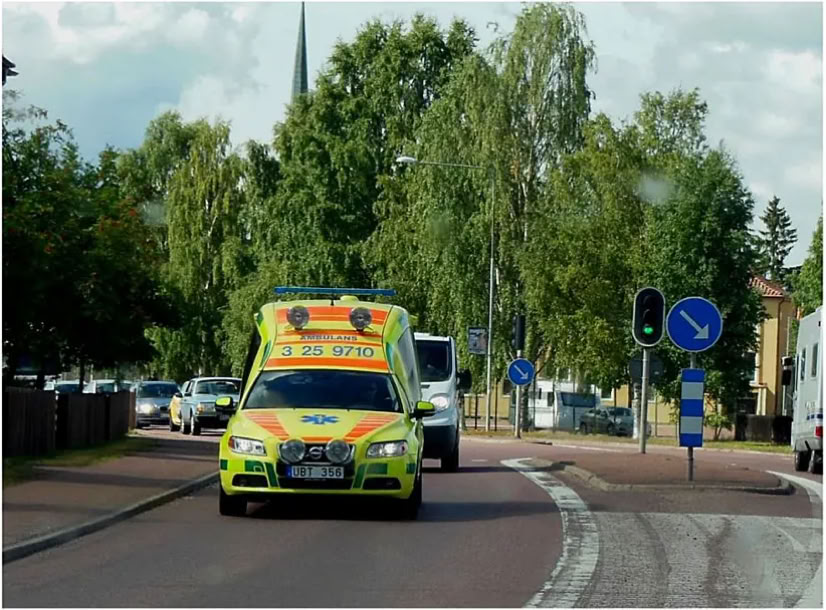 In Östersund ist das größte Krankenhaus im Umkreis von mehreren Hundert Kilometern. Mit diesem Großraum-RTW werden mehrere Patienten gleichzeitig von Östersund in die kleinen Versorgungszentren im Norden zurückverlegt und auf der Rückfahrt Patienten von den kleinen Zentren aufgesammelt, damit diese in Östersund intensiv behandelt werden können.