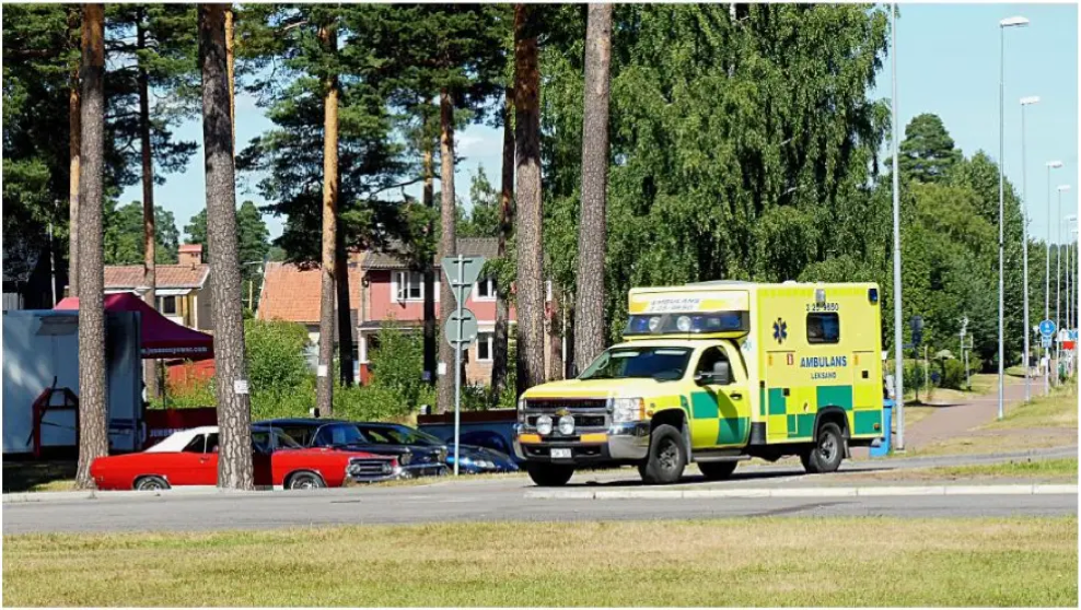 Auf der Siljan-Insel Solerön (Dalarna) stand dieser RTW aus Mora vorm Altenheim.