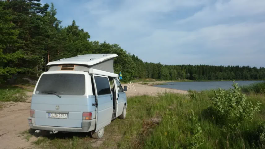 Am Badeplatz in Klenshyttan (Gemeinde Ludvika(Foto von mir)) erlebte ich noch einen schönen Abend, bevor es in der Nacht anfing zu regnen und zu gewittern. Das Gewitter dauerte bis zum nächsten Vormittag an, so dass ich mich gegen halb zehn entschied, in den von mir gemessenen vier Minuten pause zwischen den Blitzen, für drei Minuten in den See zu springen, um endlich meine Körperhygiene auf den Stand zu bringen. Leider hatte das Gewitter nicht meine Uhr und so blitzte und donnerte es, sobald ich im Wasser war. Dies führte dazu, dass das Pärchen aus dem Nachbarwohnmobil mich, mit am Fenster platt gedrückter Nase, beobachtete. Da ihr diese Seiten lesen könnt, ist klar, dass ich es überlebt habe.