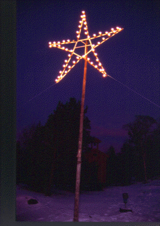 Am Abend noch ein kurzer Stopp in Bengtsfors, wo ein Stern beim Freilichtmuseum auf dem Hausberg über der Stadt prangt.