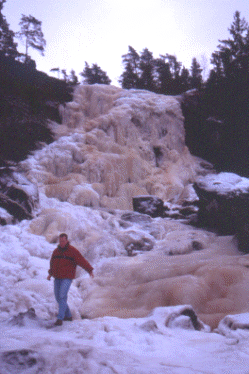 An der Grenze zuNorwegen ist der Elgåfossen , ein Wasserfall(46 m), der genau auf der Grenze liegt. Aber was heißt Wasserfall, Eisberg trifft die Sache besser