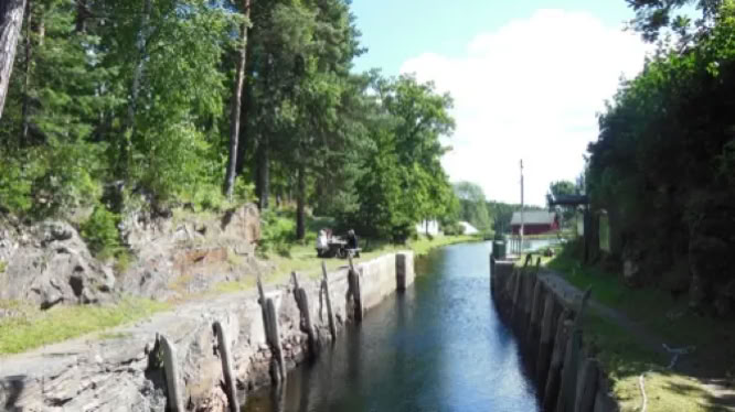 Hinter der ersten Schleuse führt der Dalsland-Kanal weiter östlich zur zweiten Schleuse.